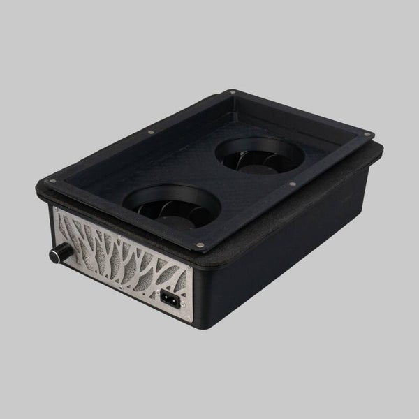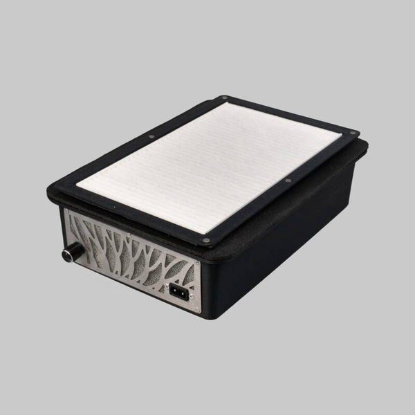 Twee ventilatoren zorgen voor een stabiele en gelijkmatige stofafzuiging over het hele vlak - niet alleen in het midden, maar ook aan de randen. Met een vermogen van 60W en een zuigsnelheid van 3,2 m/s verwijder je snel stof en houd je je werkplek schoon.