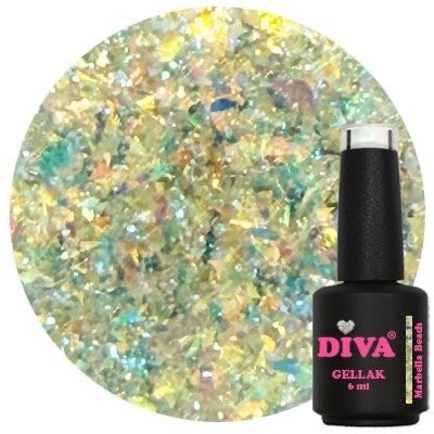 Deze collectie flake gelpolish is semi transparant en kun je combineren met elke kleur ondergrond. Ze matchen perfect met de nieuwe Diva gellak collection Sorbet Candy Diva's.