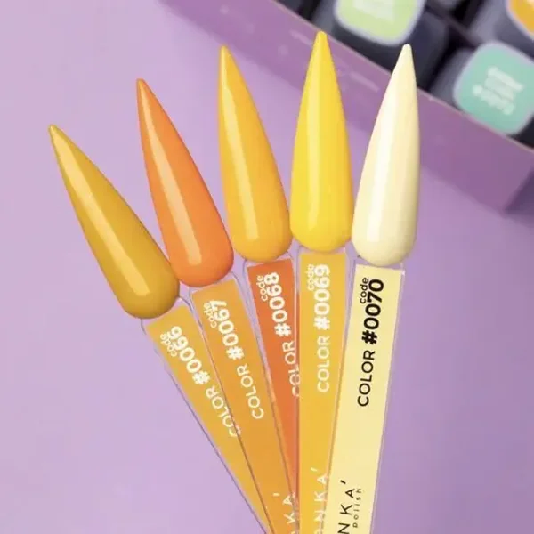DNKa’ Gellak is een collectie van hoog gepigmenteerde gelnagellakken die in één laag kunnen worden aangebracht, gelijkmatig uitstrijken, mooi drogen, duurzaam zijn, eenvoudig aan te brengen, zelfnivellerend op de nagelplaat, gemakkelijk te verwijderen, geparfumeerd en compatibel met andere merken. De collectie bestaat uit meer dan 150 tinten met een uniek design in zachte touch fluwelen potjes.